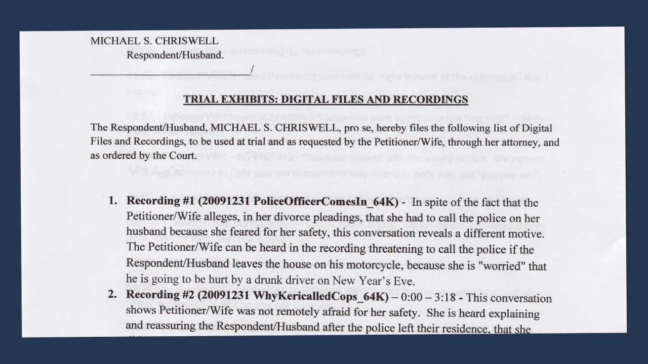 Since just before the divorce, I had audio recordings of Keri screaming at me, which proved she had lied and perjured herself in court, to make me out to be the evil one. I decided not to use them in court but Keri’s attorney, Abigail, asked the court to make me produce them because she thought I had illegally recorded Keri, which I hadn’t. Ironically, a copy of them showed back up in recent years on a court CD I found.